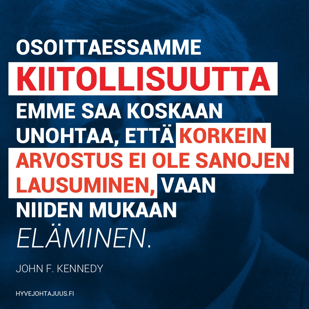 Osoittaessamme kiitollisuutta emme saa koskaan unohtaa, että korkein arvostus ei ole sanojen lausuminen, vaan niiden mukaan eläminen.