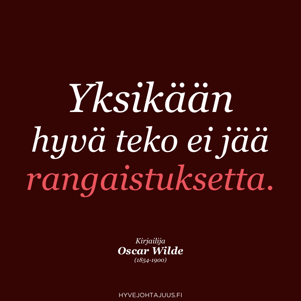 Yksikään hyvä teko ei jää rangaistuksetta. — Kirjailija Oscar Wilde (1854-1900)