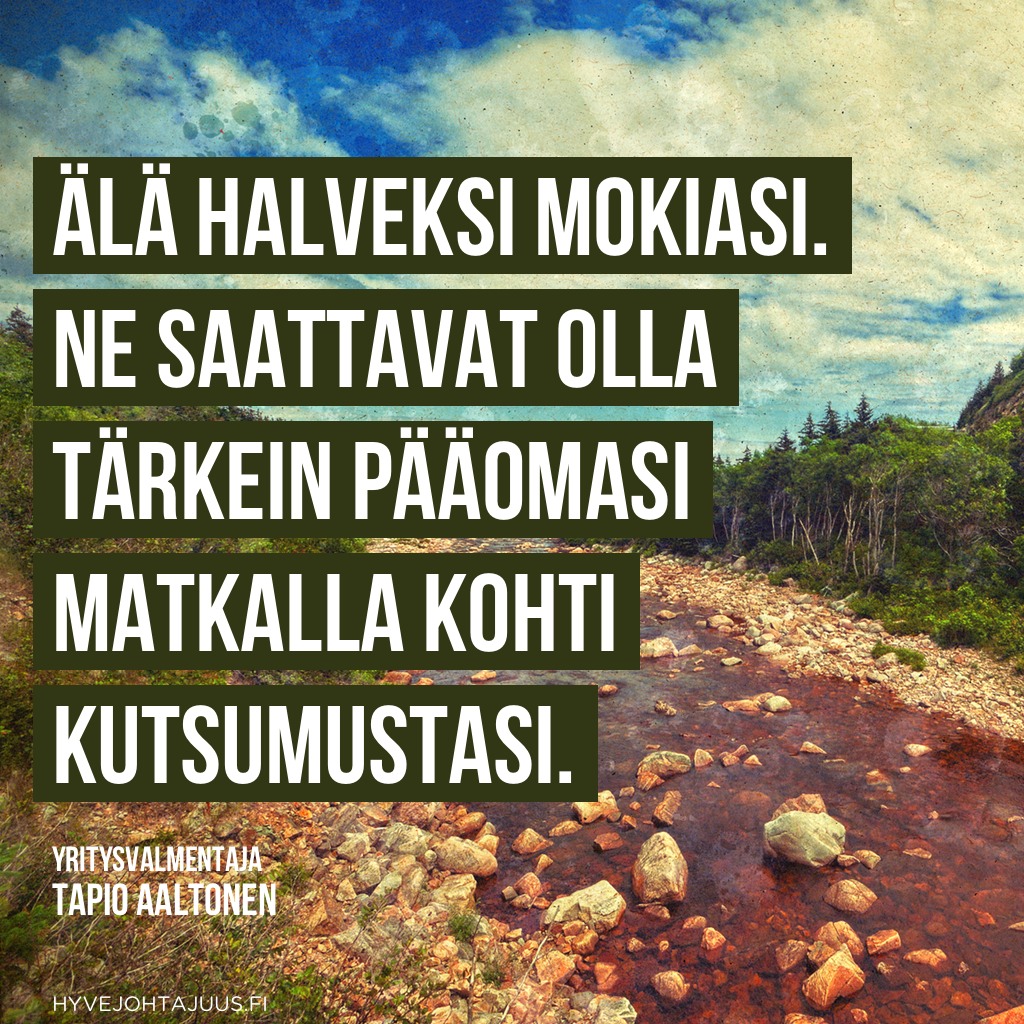 Älä halveksi mokiasi. Ne saattavat olla tärkein pääomasi matkalla kohti kutsumustasi.— Yritysvalmentaja Tapio Aaltonen