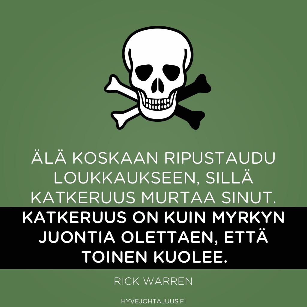Älä koskaan ripustaudu loukkaukseen, sillä katkeruus murtaa sinut. Katkeruus on kuin myrkyn juontia olettaen, että toinen kuolee.