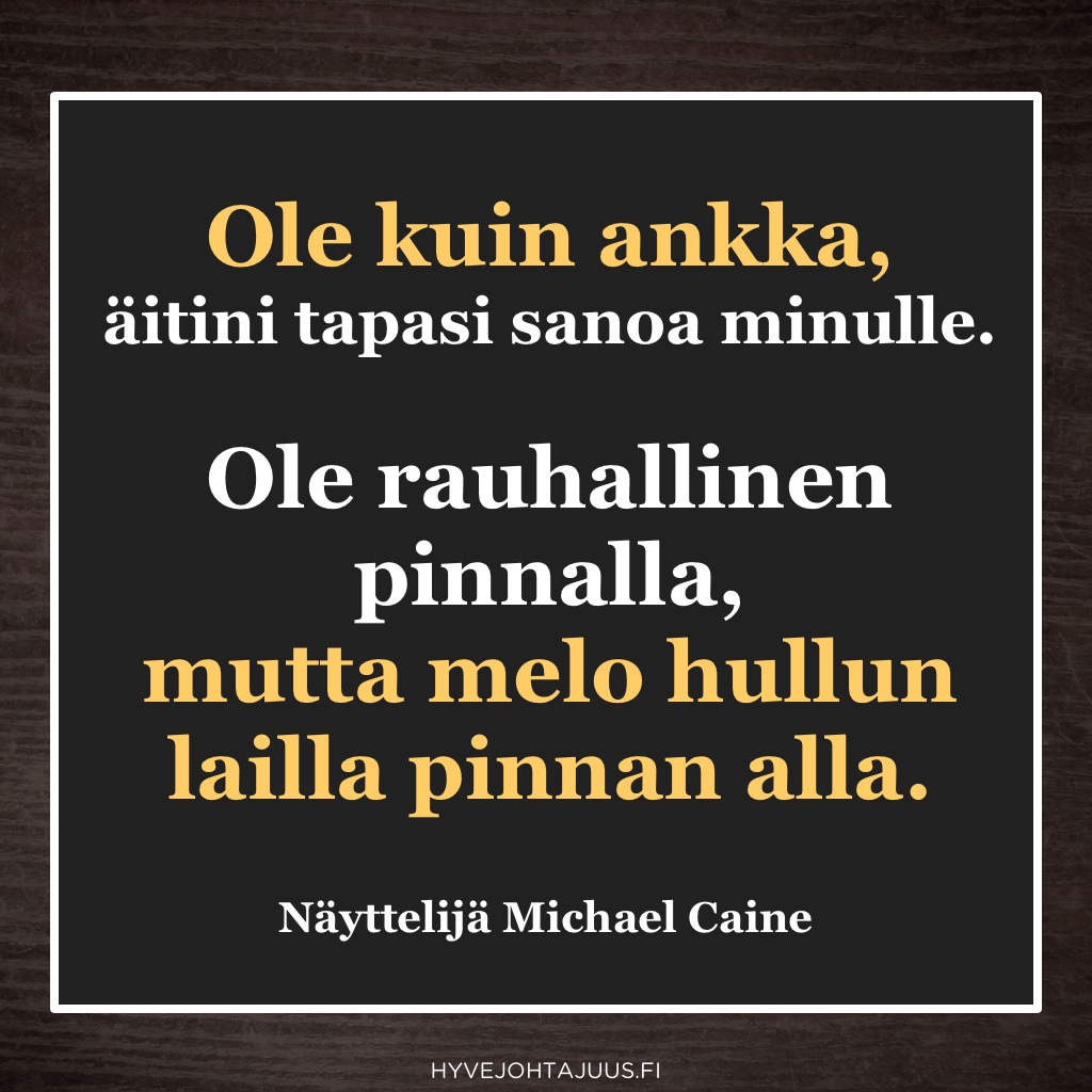 Ole kuin ankka, äitini tapasi sanoa minulle. Ole rauhallinen pinnalla, mutta melo hullun lailla pinnan alla.— Näyttelijä Michael Caine