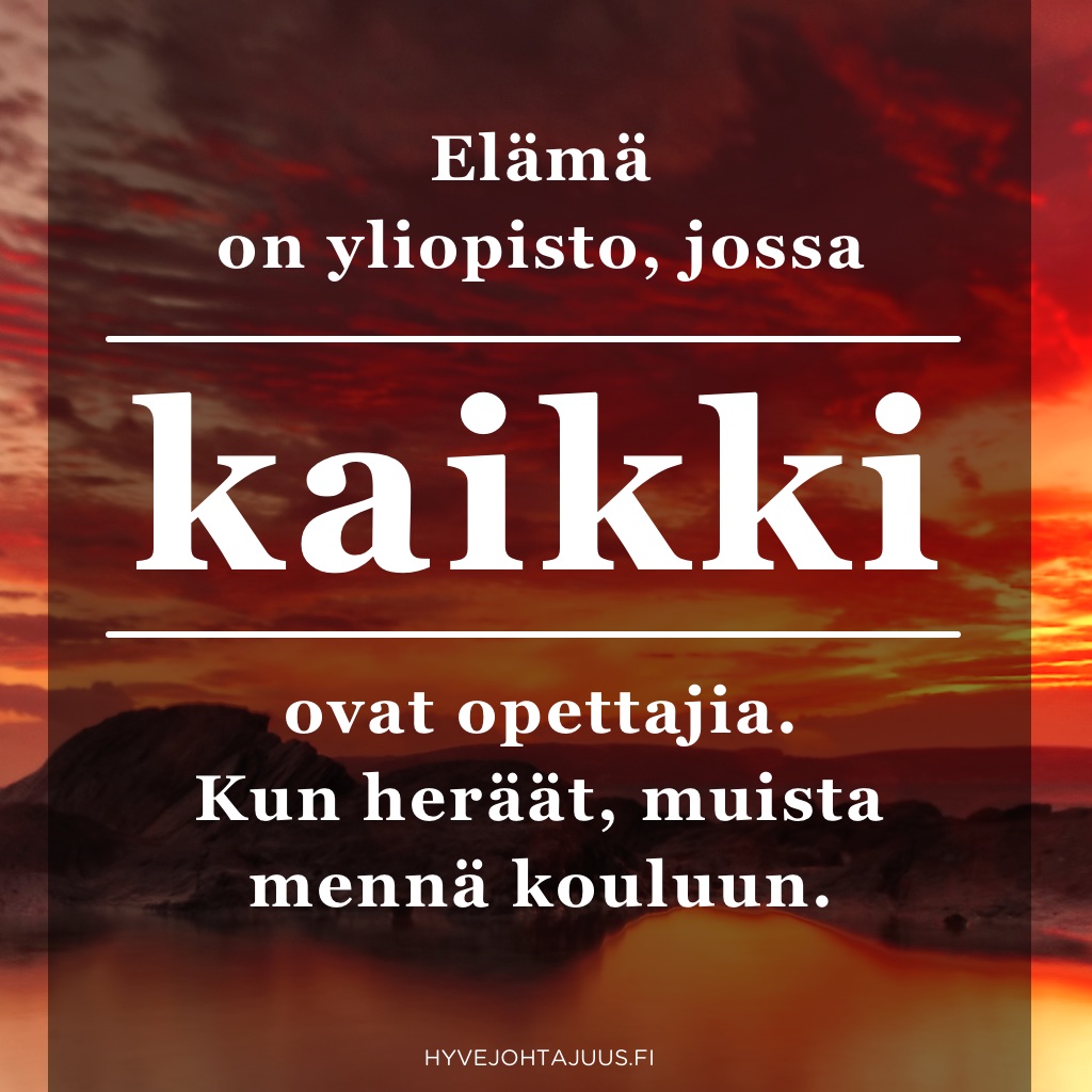 Päivän pääoma Elämä on yliopisto… 1.6.2015 Päivän pääoma Elämä on yliopisto, jossa kaikki ovat opettajia. Kun heräät, muista mennä kouluun. Muita juttuja Päivän pääoma Paras aika… 15.5.20173.5.2017 Päivän pääoma Päivän pääoma Se, että emme uskalla… 8.5.20173.5.2017 Päivän pääoma