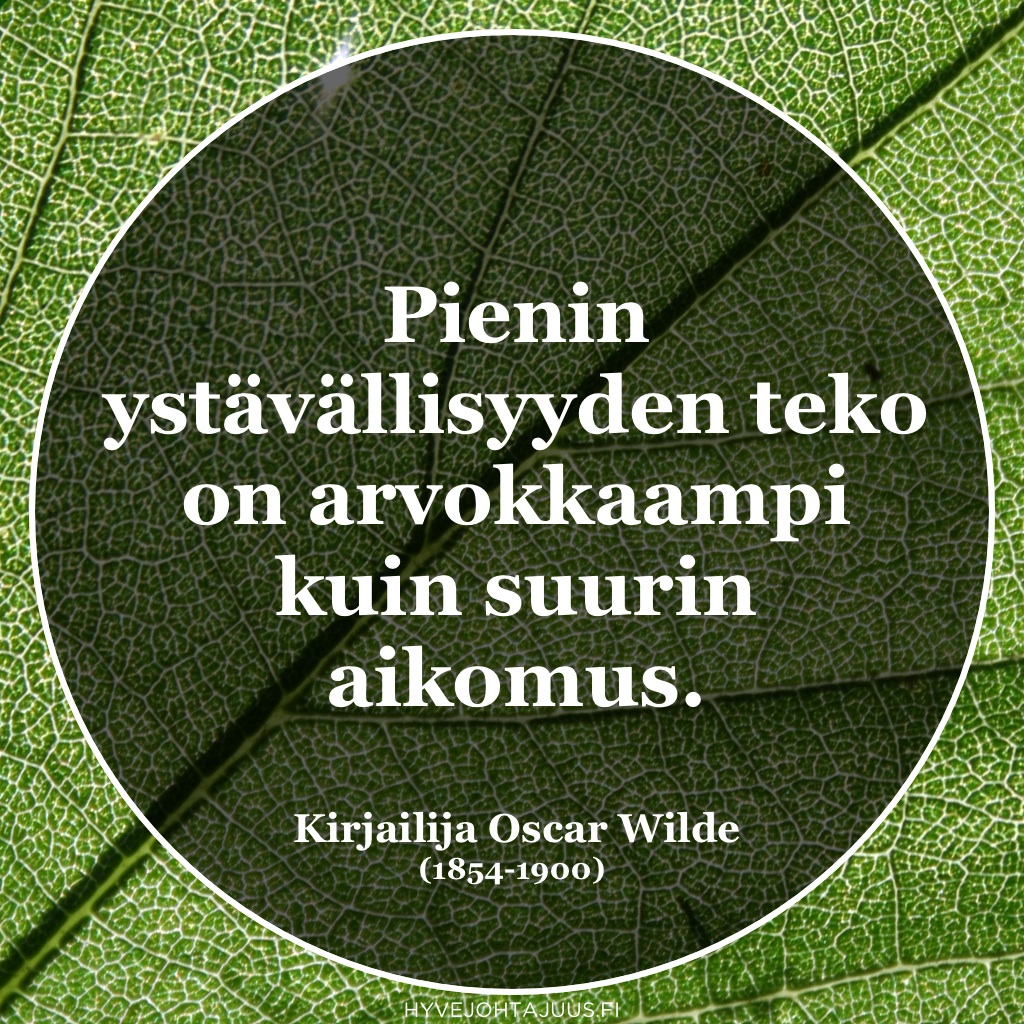 Pienin ystävällisyyden teko on arvokkaampi kuin suurin aikomus. — Kirjailija Oscar Wilde (1854-1900)