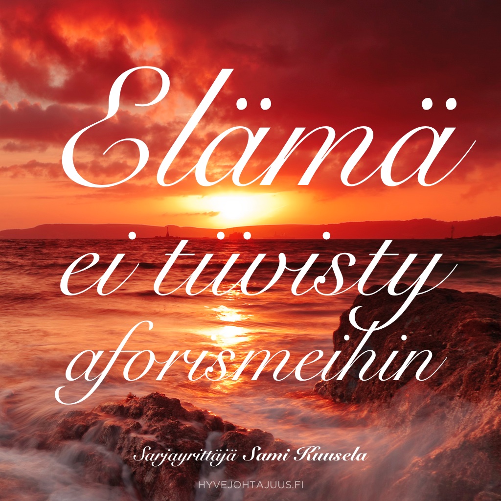 Päivän pääoma Elämä ei tiivisty… 15.9.2015 Päivän pääoma Elämä ei tiivisty aforismeihin.— Sarjayrittäjä Sami Kuusela Muita juttuja Päivän pääoma Paras aika… 15.5.20173.5.2017 Päivän pääoma Päivän pääoma Se, että emme uskalla… 8.5.20173.5.2017 Päivän pääoma