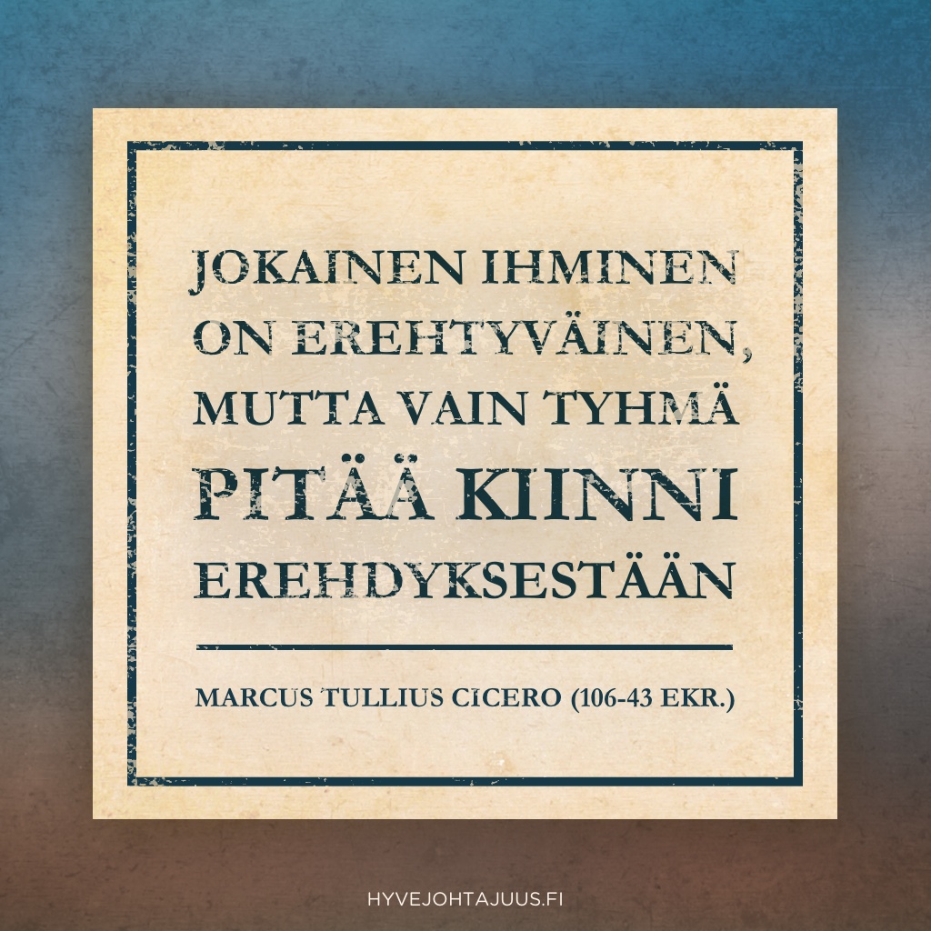 Jokainen ihminen on erehtyväinen, mutta vain tyhmä pitää kiinni erehdyksestään. — Marcus Tullius Cicero (106-43 eKr.)