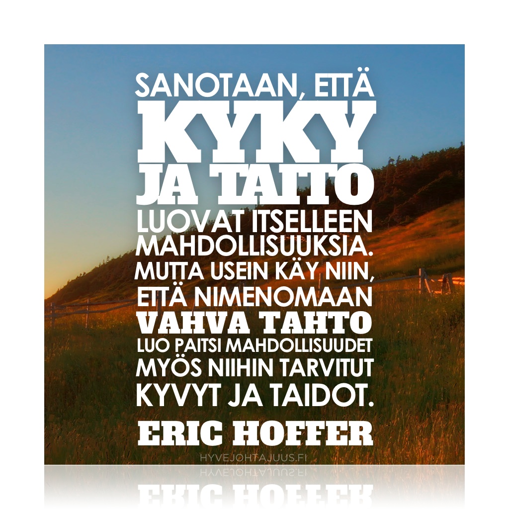 Sanotaan, että kyky ja taito luovat itselleen mahdollisuuksia. Mutta usein käy niin, että nimenomaan vahva tahto luo paitsi mahdollisuudet myös niihin tarvitut kyvyt ja taidot.