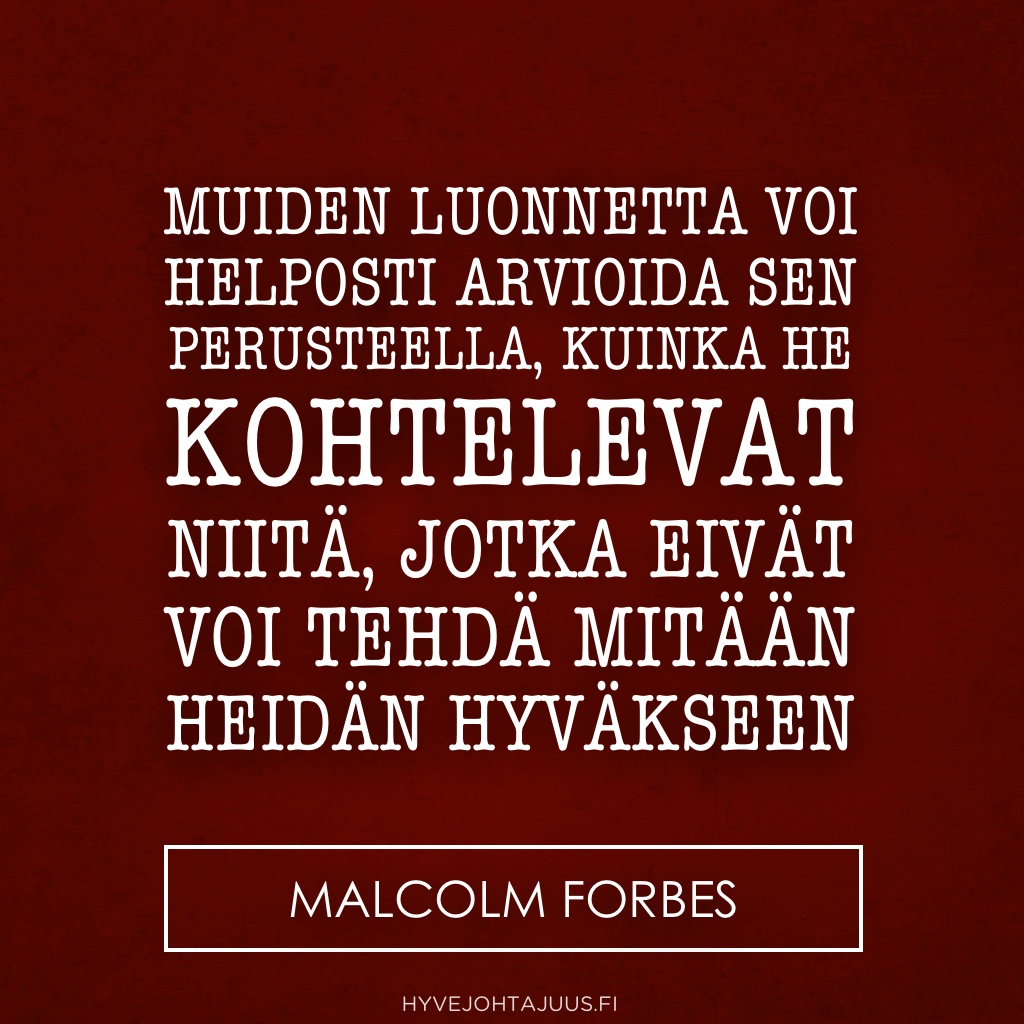 Muiden luonnetta voi helposti arvioida sen perusteella, kuinka he kohtelevat niitä, jotka eivät voi tehdä mitään heidän hyväkseen.— Malcolm Forbes